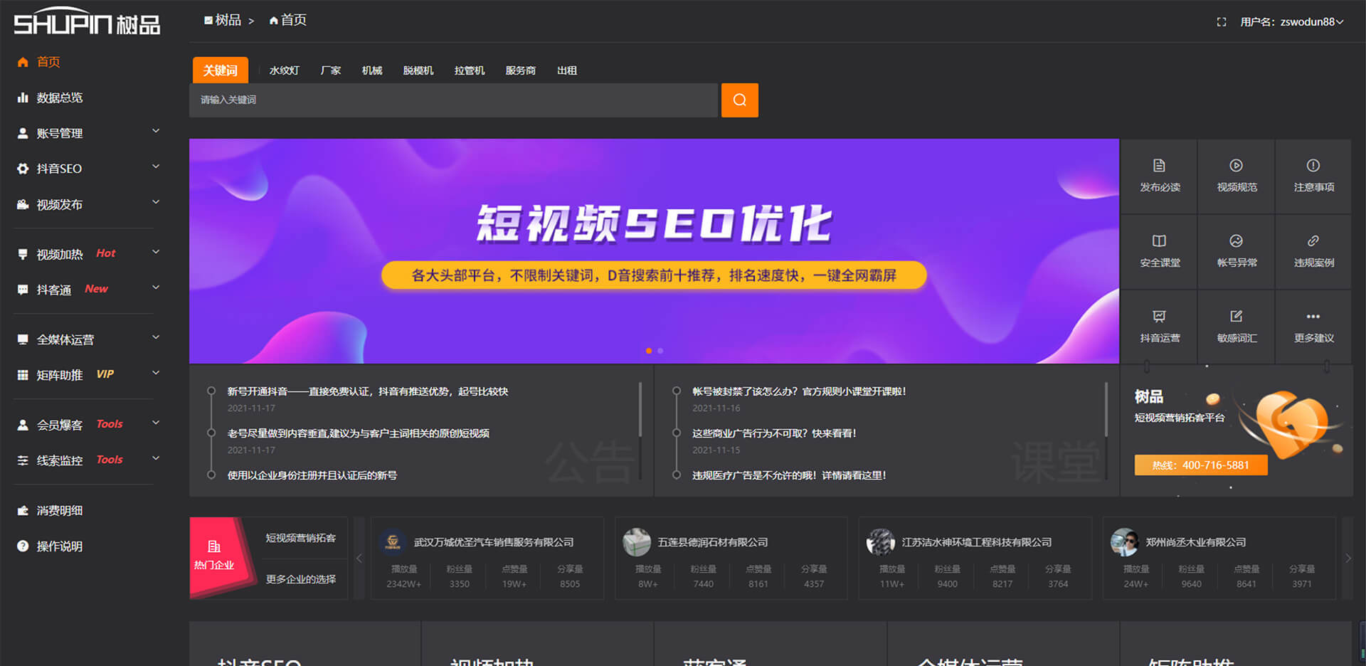 樹品是由南方網(wǎng)通自主研發(fā)的基于企業(yè)的短視頻矩陣及內(nèi)容進(jìn)行全面的AI短視頻生態(tài)場(chǎng)景營銷。